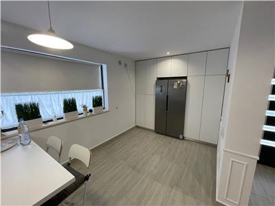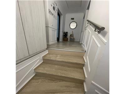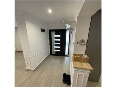 Locuinta prezinta dotari si finisaje de calitate precum: usa de acces din PVC cu insertii de sticla, usi interioare din PVC, tamplarie PVC cu 5 camere si 3 foi de sticla, mobilier la comanda, centrala termica proprie cu incalzire in pardoseala la parter si calorifere din otel la etaj, termostat inteligent zonal, intrerupatoare marca Schneider, pardoseli acoperite cu gresie la parter, parchet laminat de trafic la etaj, scara interioara placata cu travertin si sistemul de iluminat este realizat pe scafe moderne cu spoturi incastrate.