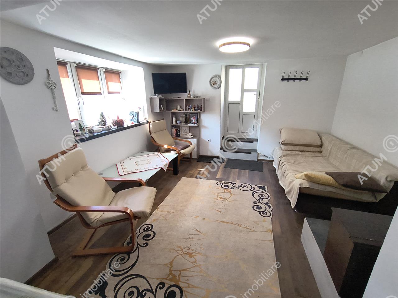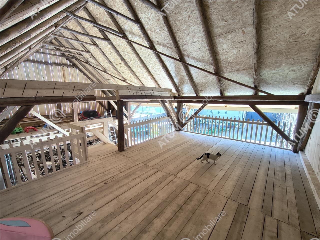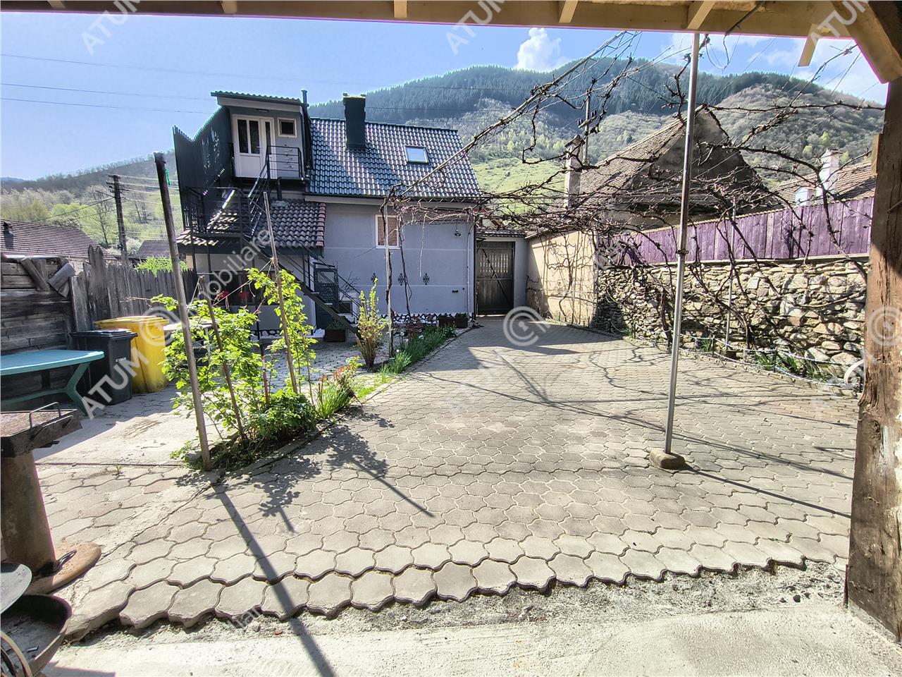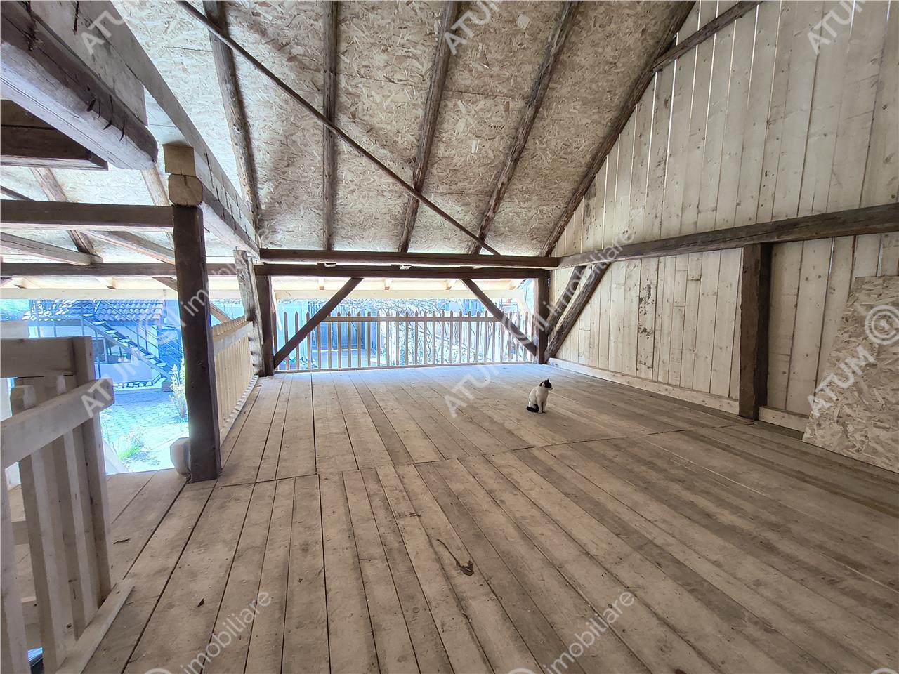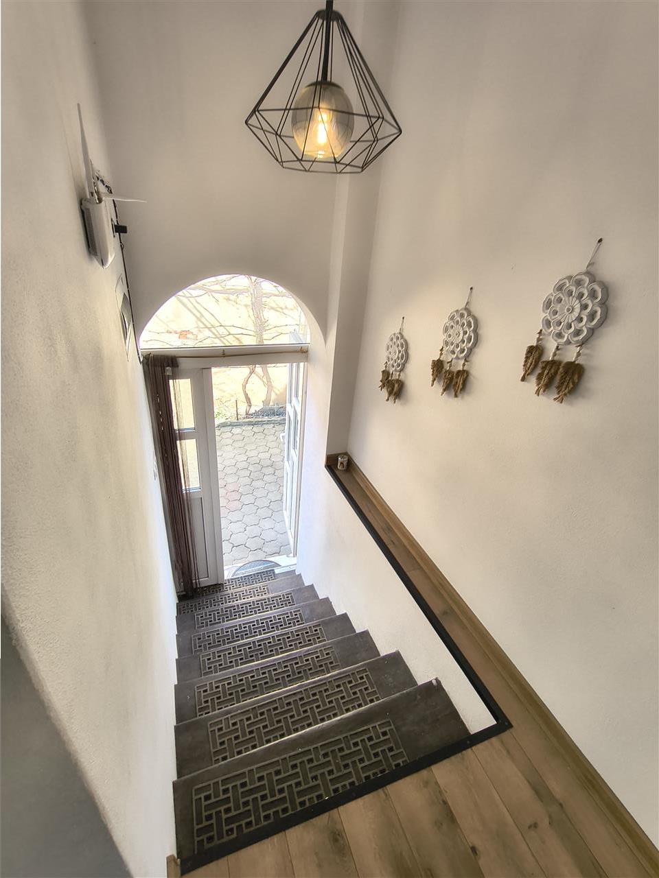 Proprietatea detine 373 mp teren si este impartita in 2 corpuri de cladire, astfel: Primul corp stradal reprezinta casa de locuit, aici sunt 3 niveluri, si anume: la demisol se afla un living deschis cu bucataria complet mobilata si dotata cu electrocasnice, loc de luat masa si o camara, la parterul inalt al casei se afla un hol, 2 camere si o baie cu dus walk in iar la mansarda a fost amenajata inca o camera generoasa si o baie de serviciu. Langa casa mai beneficiati si de o bucatarie de "vara" cu acces din curte (aici se afla o soba cu plita si cazan traditional). Primul corp insumeaza 110 mp utili, interiorul este primitor si luminos, oferind un ambient cald si elegant, perfect atat pentru locuinta permanenta cat si ca resedinta de vacanta sau investitie agroturistica.
