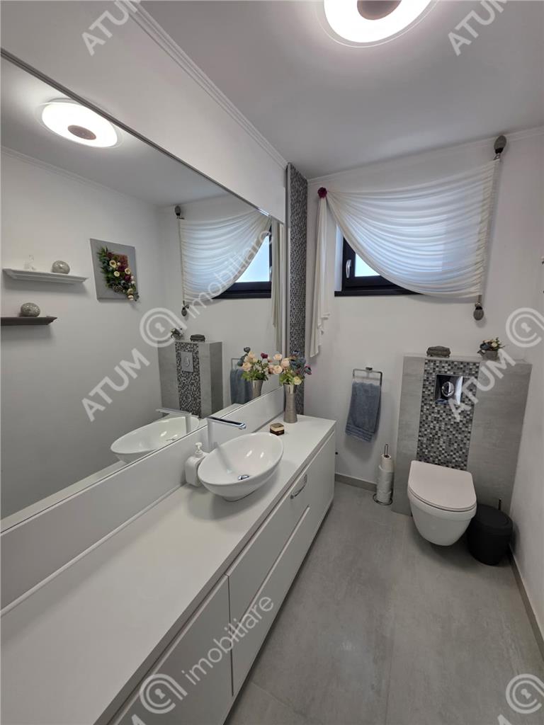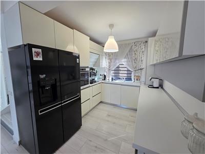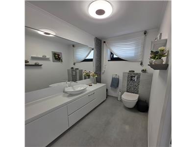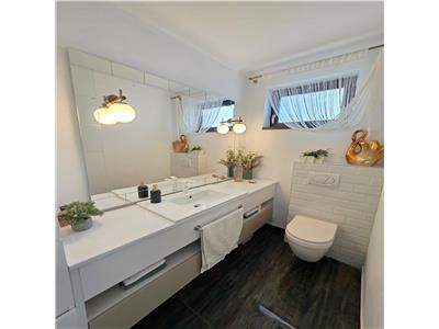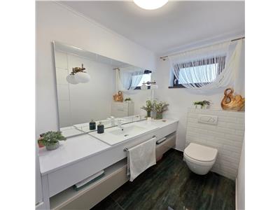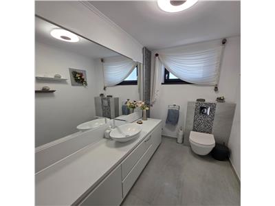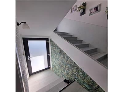 Casa se vinde complet mobilata si utilata si beneficiaza de dotari si finisaje precum: centrala termica in condesatie si intalzire in pardoseala atat la Parter cat si la Etaj cu distribuitoare separate pentru fiecare nivel, tamplarie PVC cu geam termopan 5 camere si 3 foi de sticla. Atat instalatia electrica cat si cea termica realizate din cupru, usa de acces din PVC izolatore termic si fonic, pereti tencuiti ( tencuiala var-ciment ), gletuiti si zugraviti in lavabila alba, instalatii electrice cu tablou general individual si sigurante pentru consumatorii de putere, prize si intrerupatoare montate din gama premium, instalatii pentru curenti slabi ( TV, Telefon, Internet ).