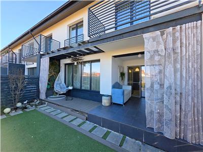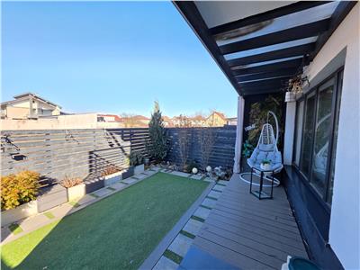 Separat de suprafata utila mai detine un balcon de 5 mp la etaj, o terasa de 10 mp la parter din care se face accesul catre curtea privata de aproximativ 30 mp si pod pe toata suprafata casei destinat depozitarii.