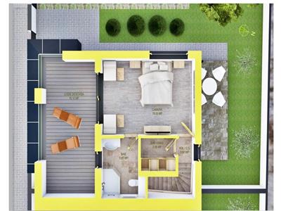 Suprafata utila a casei este de 127 mp, aceasta fiind distribuita pe toate cele trei niveluri. Parterul este alcatuit dintr-un hol de acces 1,85 mp unde este destinata si zona pentru pantofar si cuier, camera de zi 28,80 mp si bucataria tip open space de 15,45 mp care include si dinning, camera de zi si bucataria pot fi separate, toaleta de serviciu 2,80 mp. Etajul este compus din doua dormitoare, unul de 14,50 mp iar al doilea de 12,85, dressing de 5.10 mp, baia 6.65 mp dotata cu geam de aerisire si amenajata pentru cada si holul+casa scarii 9.55 mp. Etajul retras este amenajat si dotat conform zonei matrimoniale, acesta fiind compus din dormitor spatios de 18.00 mp, baie 5.85 mp dotata cu geam si cada si un dressing de 2,85 mp.