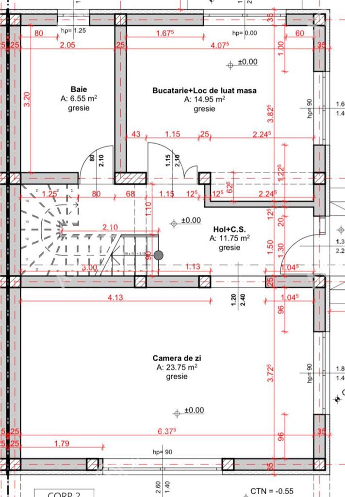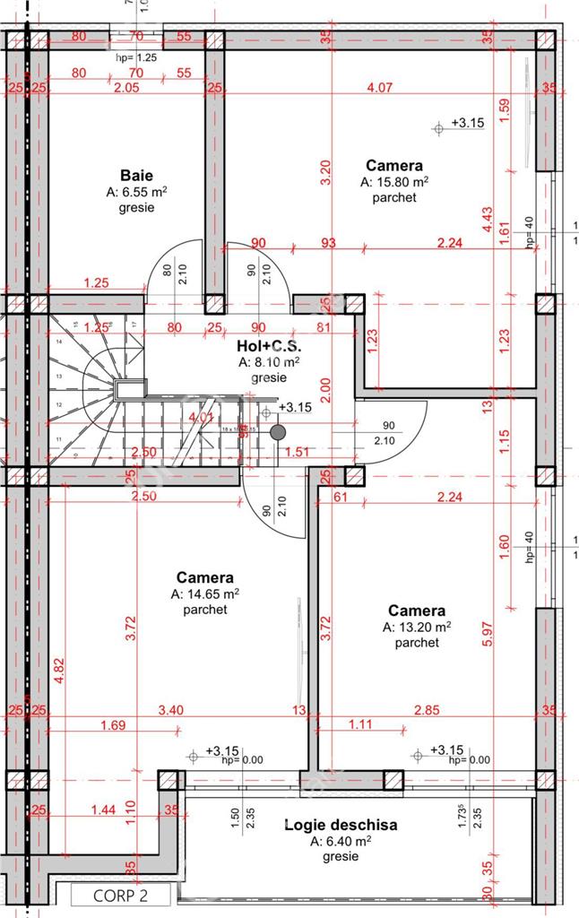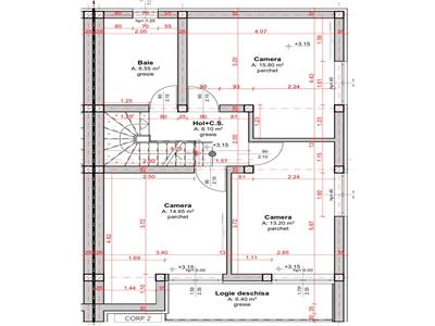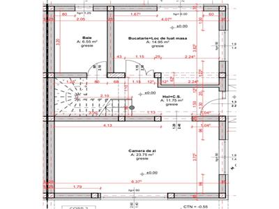 Suprafata utila case masoara 113 mp utili, acesta fiind alcatuita la Parter din: camera de zi generoasa 23.75 mp unde poate fi amenajat si dinningul pentru mesele in familie, bucatarie separata cu camara care insumeaza 15,45 mp, baia de serviciu 5.55 mp pregatita pentru montarea dusului si holul de acces+ casa scarii de 11.75 mp. Etajul consta in 3 dormitoare dintre care dormitorul matrimonial masoara 15,80 mp dotat cu dressing, al doilea dormitor de 12,65 mp dotat cu dressing si un al treilea dormitor de 13.20 mp si o baie de 6,55 mp dotata cu geam de aerisire si pregatita pentru cada.