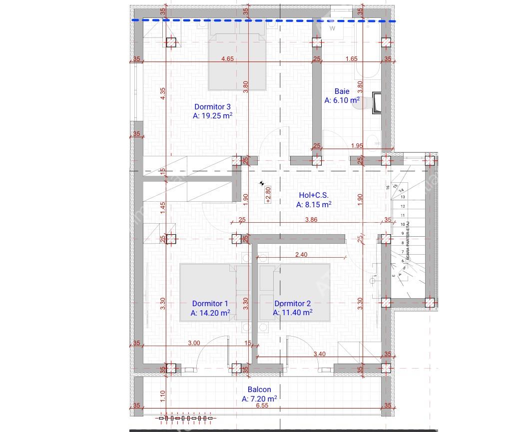 -Planseul de la etaj realizat din beton armat si izolat cu vata de lana;