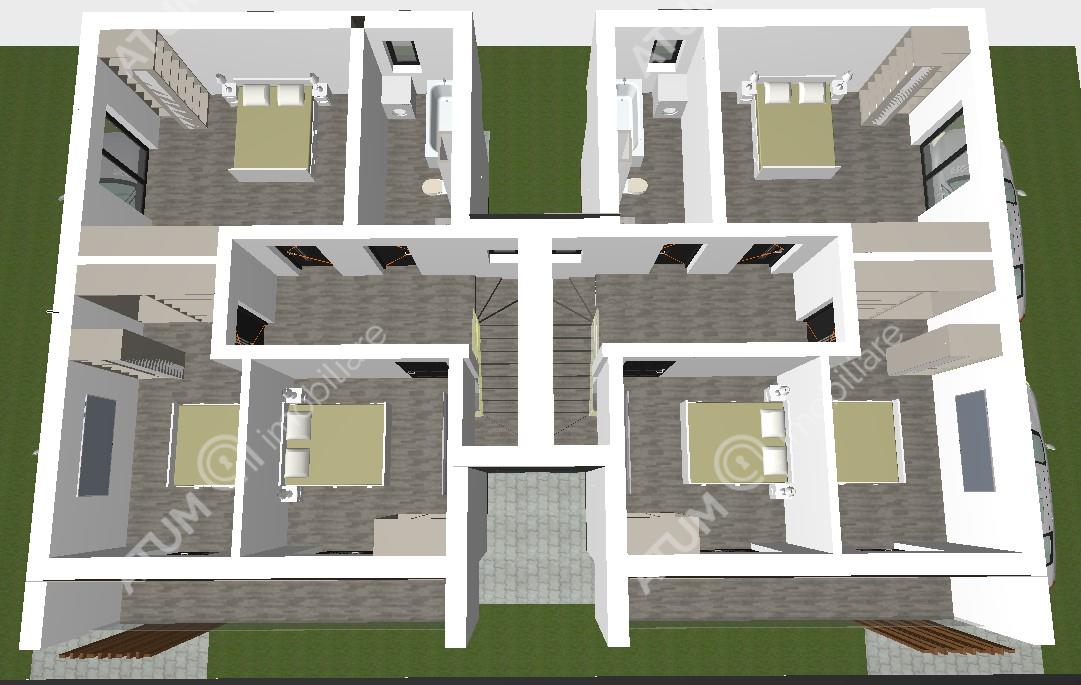 Separat de suprafata utila casa mai dispune si de un balcon de 7,20 mp la etaj in care accesul se face din 2 dormitoare.