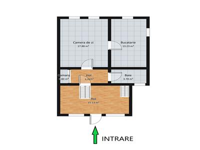 Suprafata utila distribuita pe ambele nivele insumeaza aproximativ 100 mp, fiind alcatuita dintr-un hol generos de acces prin intermediul caruia se face accesul la ambele niveluri si unde este amenajata o zona de primire de aproximativ 15 mp, demisolul fiind compus dintr-un living generos de 17,90 mp, bucataria separata de 13,20 mp, baia dotata geam de aerisire si cabina de dus 4,30 mp, o camara de 0,80 mp si un hol de 6,20 mp. Parterul este alcatuit din dintr-un dormitor matrimonial de 15,00 mp si alte 2 dormitoare destinate copiilor sau oaspetilor cat si un hol de 10,60 mp prin intermediul caruia se face accesul in toate incaperile si intr-un dressing, a doua baie de 2,30 mp dotata cu dus si geam pentru aerisire.