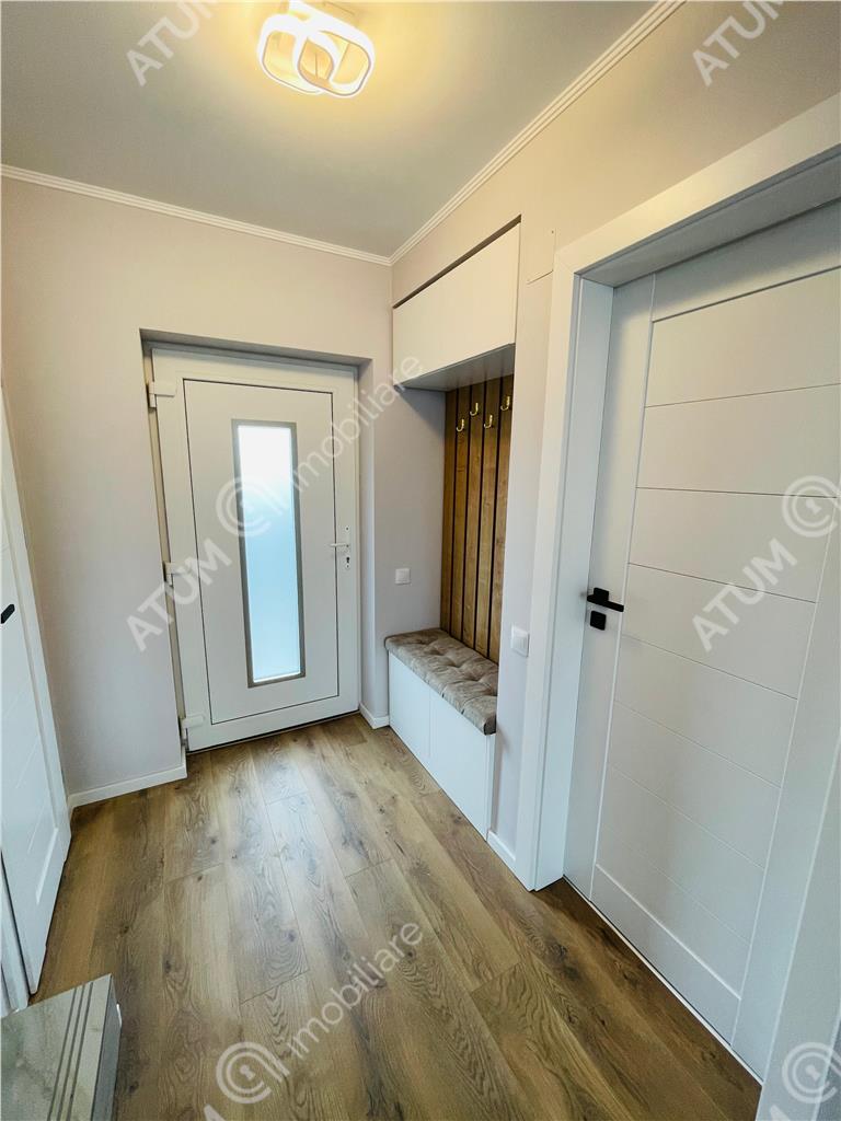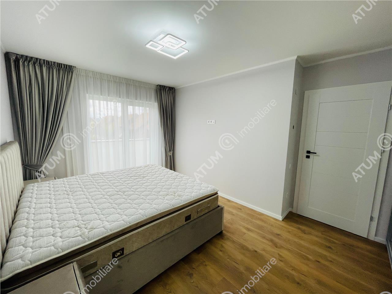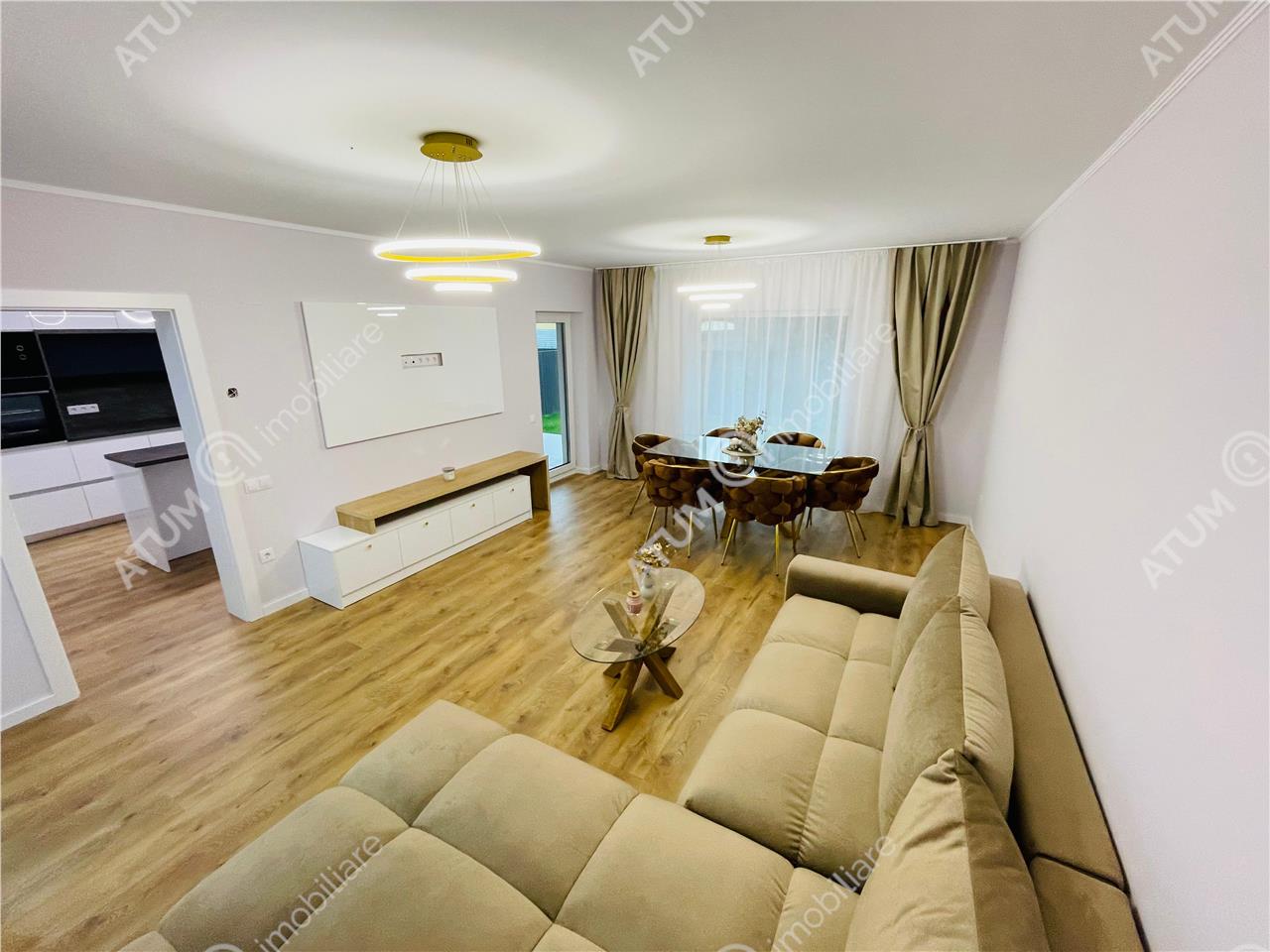 La interior, casa este finisata la standarde moderne, cu pereti tencuiti, gletuiti si zugraviti in lavabila, pardoseli din parchet SPC si gresie, bai complet echipate cu obiecte sanitare suspendate si mobilier realizat la comanda, precum si usi interioare din MDF si lemn marca Naturen. Instalatiile electrice sunt realizate pe cupru, cu tablou general si sigurante separate, prize si intrerupatoare Schneider Sedna, iar pentru confort sporit sunt prevazute instalatii pentru aer conditionat, rulouri exterioare electrice si curenti slabi.