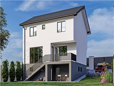 Casa este structurata pe demisol, parter si etaj, fiind proiectata pentru a raspunde nevoilor unei familii moderne. Demisolul, cu o suprafata de aproximativ 36 mp, este compus din doua incaperi separate, fiecare cu acces propriu din exterior, acestea putand fi utilizate ca pivnita, spatiu de depozitare, bucatarie de vara, birou sau zona pentru hobby, beneficiind de suprafete vitrate care asigura iluminare naturala.