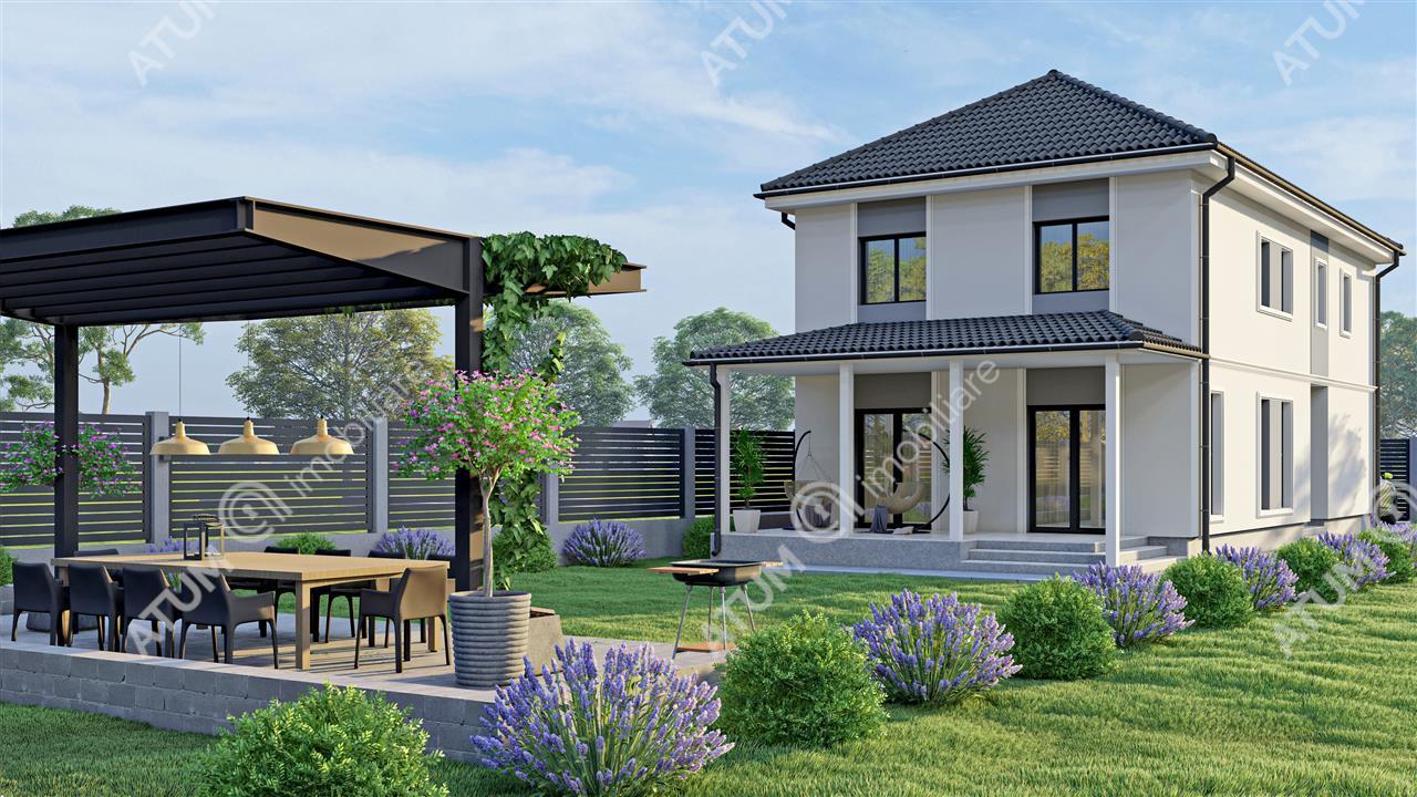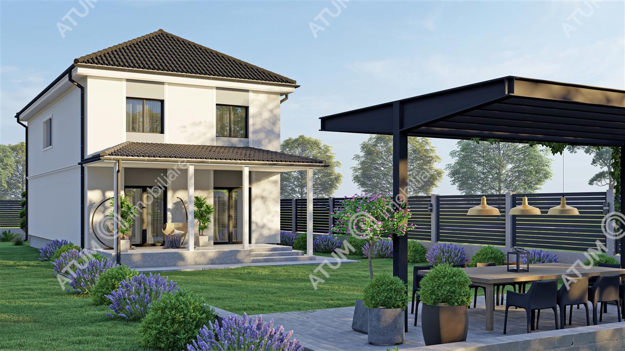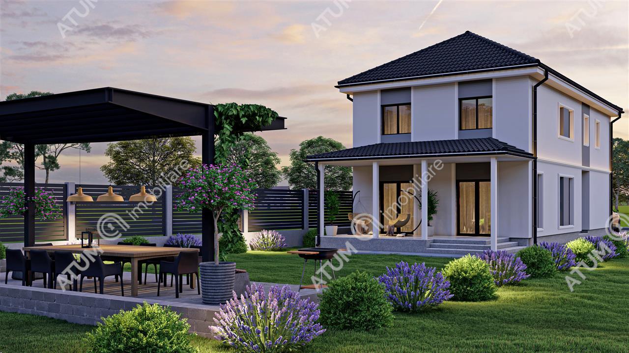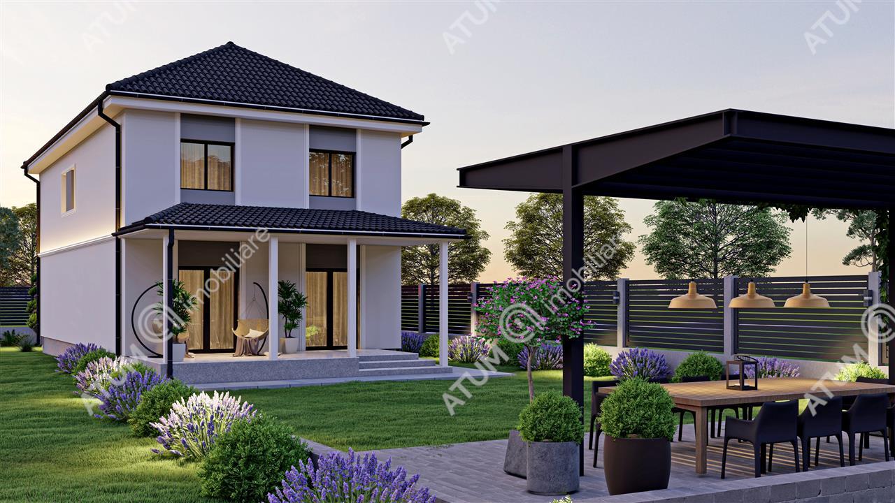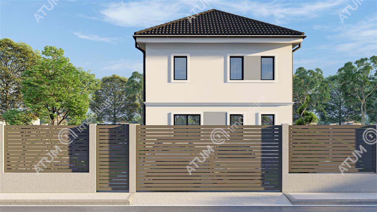 Casa dispune de o suprafata utila de 145 mp, repartizata pe doua niveluri.