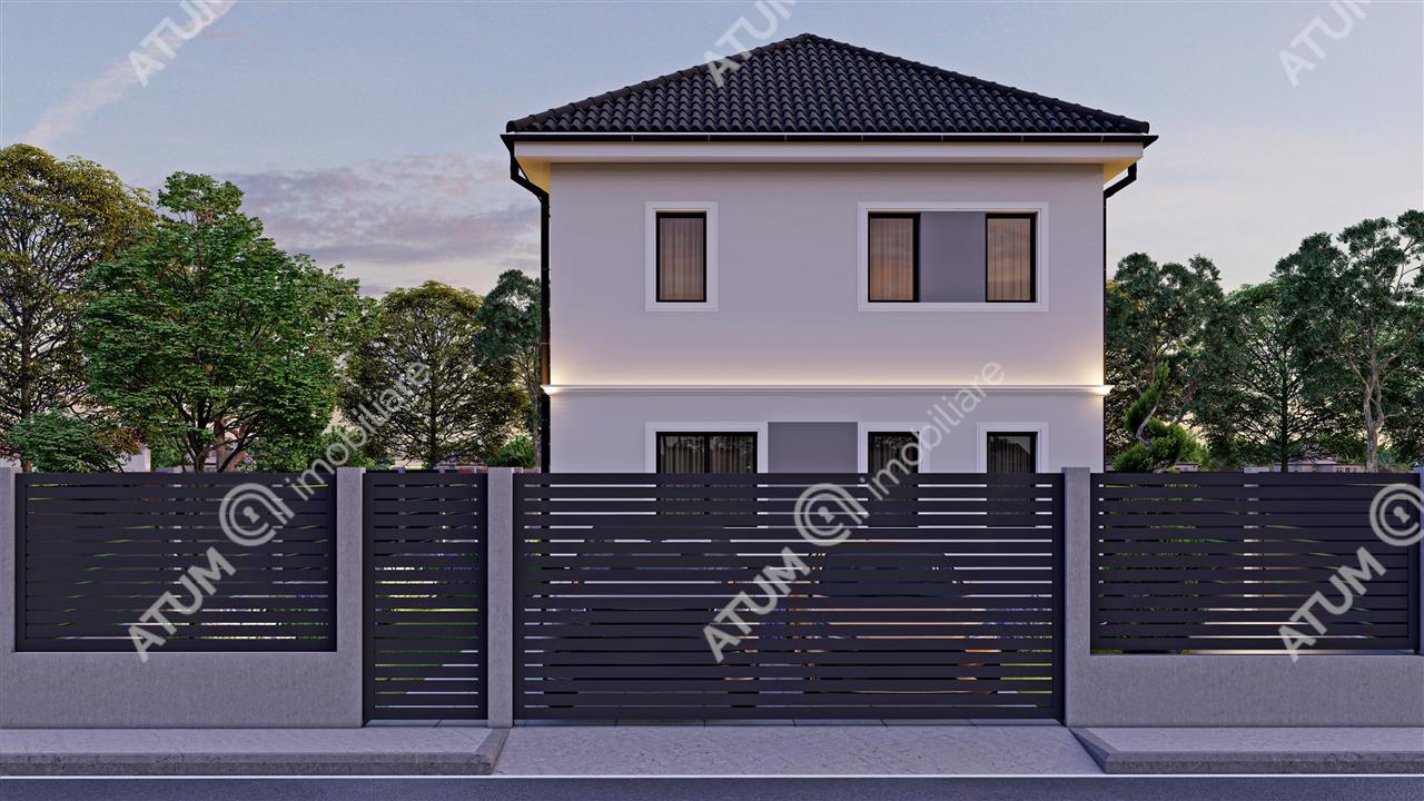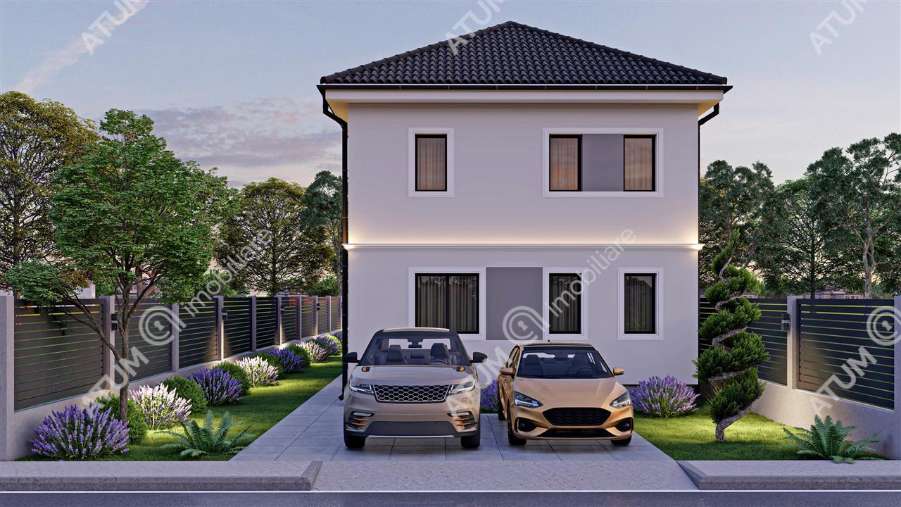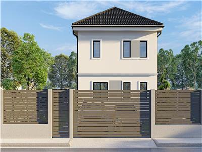 Contorizare individuala pentru gaz, curent si apa. Curtea si gradina vor fi amenajate cu , alei pietonale pavate, alee de acces auto si locuri de parcare pavate (gazon la cerere). Racorduri exterioare pentru apa, atat in partea din fata, cat si in partea din spate a casei. Imprejmuire cu gard cu structura din beton, inchideri din caramida si panouri metalice vopsite electrostatic. Poarta metalica pentru acces auto, cu posibilitate de automatizare, si poarta pietonala cu interfon.