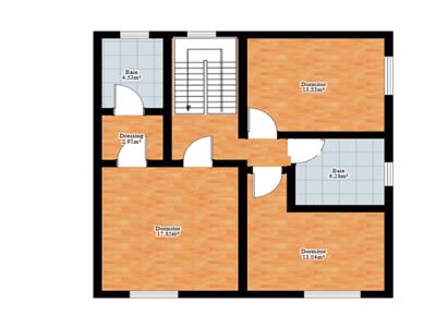 La parterul inalt spatiul este compus din hol de acces dotat cu pantofar si cuier, bucataria inchisa complet mobilata si utilata, living generos prevazut cu o zona special amenajata pentru citit si scrile care fac accesul la etajul superior unde sunt 3 dormitoare decomandate, unul cu dressing si baie proprie iar celelalte doua dormitoare sunt deservite de o baie comuna.