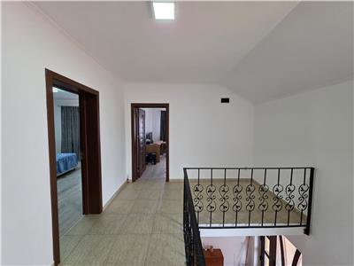 Casa are o suprafata utila de 142 mp, impartita pe doua niveluri. La parter se afla un living, dormitor, bucatarie echipata complet, o baie cu geam de aerisire dotata cu cabina de dus, un hol spatios si o terasa, iar la etaj hol, 3 dormitoare, baie si doua balcoane.