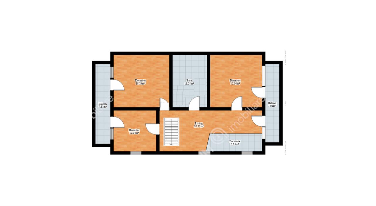 Casa are suprafata utila de 170 de mp, dispusi pe 2 niveluri (85 mp), cate 3 dormitoare pe nivel, si este compusa din 6 dormitoare, 2 livinguri, o bucatarie, 2 bai si 2 balcoane. Este pretabila pentru apartamentare pe fiecare nivel. Pe langa suprafata utila, la etaj, sunt 2 balcoane neamenajate cu acces din toate camerele. De asemenea dispune de 2 locuri de parcare in fata imobilului si o alee cu drept de servitute ce asigura acces spre alte 2 imobile.