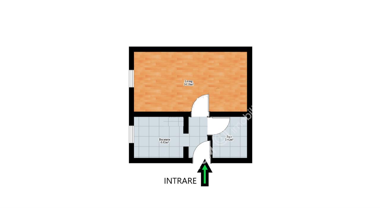 Locuinta are suprafata de 32 mp si este compusa din hol acces, living, bucatarie si baie.
