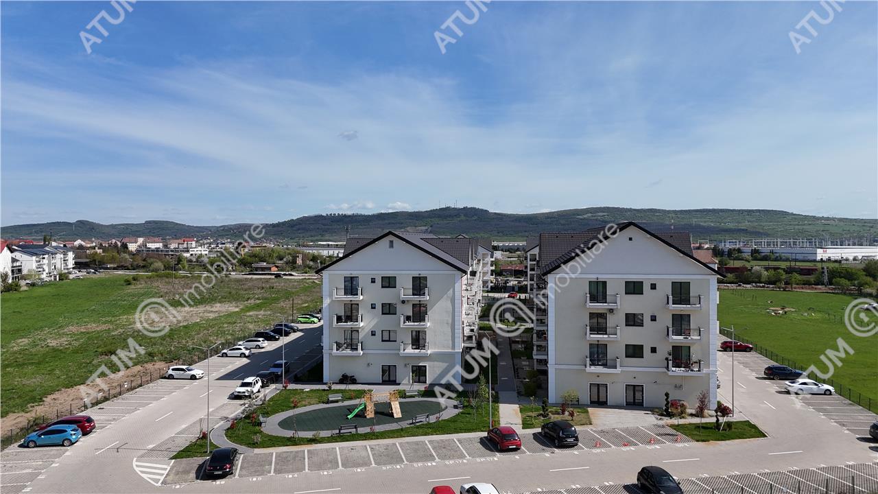 Ansamblul rezidential ofera un mediu placut si sigur, cu acces securizat, lift, spatii verzi amenajate, alei pietonale, parcari delimitate si loc de joaca pentru copii.