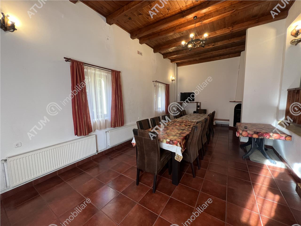 Amenajarile au fost realizate dupa finalizarea constructiei, in anul 2007 si includ urmatoarele: centrala termica pe lemne si calorifere din otel; apa calda este asigurata de cele 3 boilere; tamplarie PVC cu geam termopan, instalatie termica si electrica din cupru; usile de acces din metal si din lemn iar usile interioare sunt din lemn; pardoseala este realizata din dusumea de lemn masiv, pardoseala bailor si a bucatariei este placata cu gresie; zugraveli realizate pe baza de vopsea lavabila.Imobilul este disponibil spre vanzare imediata si se preda mobilat si utilat pentru a putea desfasura activitate in domeniul HORECA sau uz personal ca si casa de vacanta.