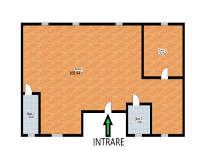 Spatiul are suprafata utila de 206 mp si este compus din 2 camere, una de 169 mp ce poate fi recompartimentata dupa necesitatile dorite, si o alta de 23.50 mp si 2 bai de 7.10 mp, respectiv 7.30 mp.