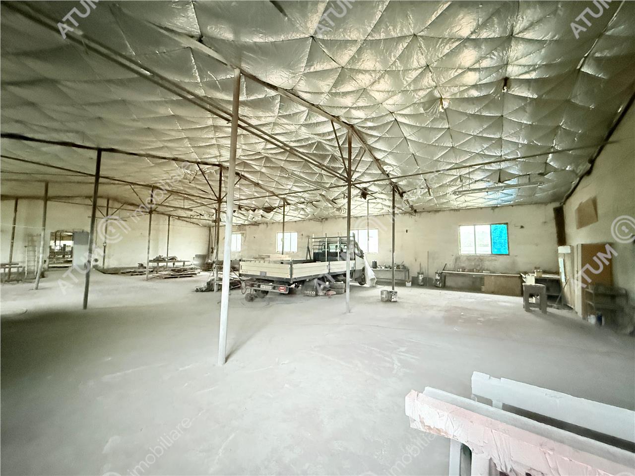 De inchiriat hala industriala in localitatea Cisnadie, judetul Sibiu, situata pe un singur nivel, cu o suprafata utila de 1200 mp, amplasata pe un teren de 3250 mp. Amprenta construita este de 2028 mp, iar terenul liber ramas are o suprafata de 1222 mp, oferind astfel posibilitati multiple pentru extindere, amenajare platforme exterioare, parcare sau zona de incarcare-descarcare.