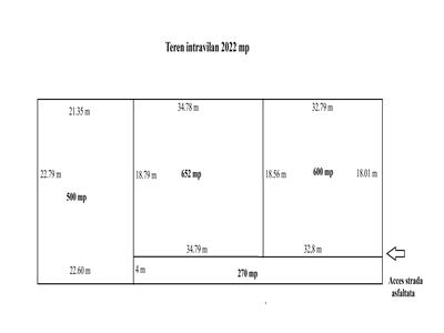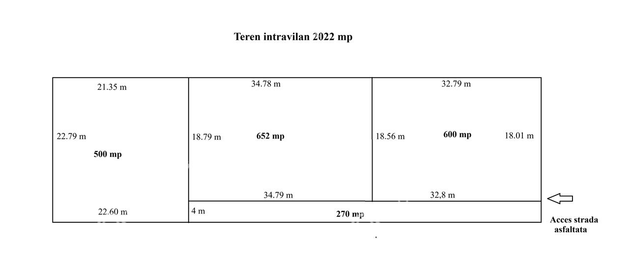 Terenul se incadreaza in categoria curti constructii si se permite construirea de locuinte individuale si colective mici cu maxim P+2 niveluri, avand un POT de 45% si CUT de 1.3. Avanad un drum de acces de 4 m si 3 parcele ded 500 mp, 652 mp si 600 mp.