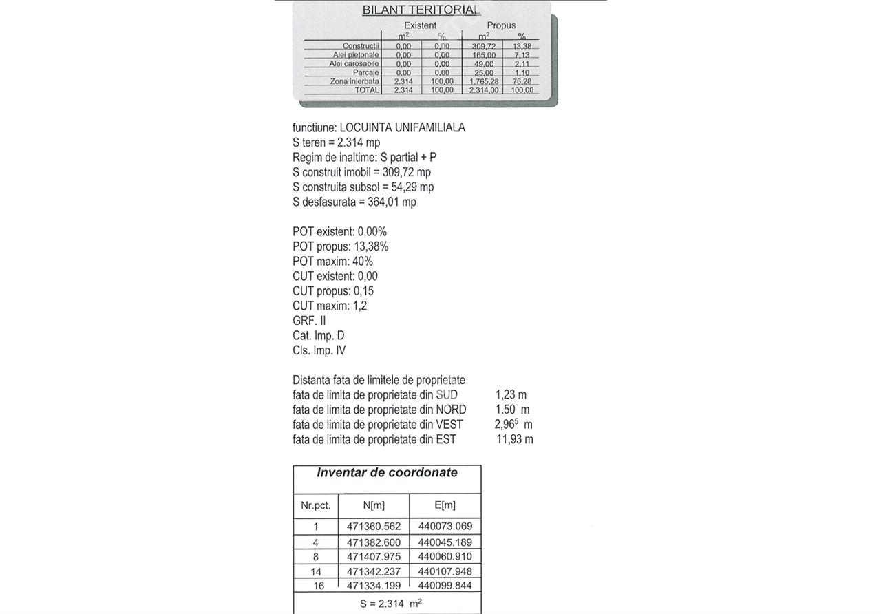In conformitate cu indicii urbanistiti din Certificatul de Urbanism fiecare parcela suporta un Procent de Ocupare ( POT ) de 40%, si un Coeficient Maxim de Utilizare ( CUT ) 1.2%.