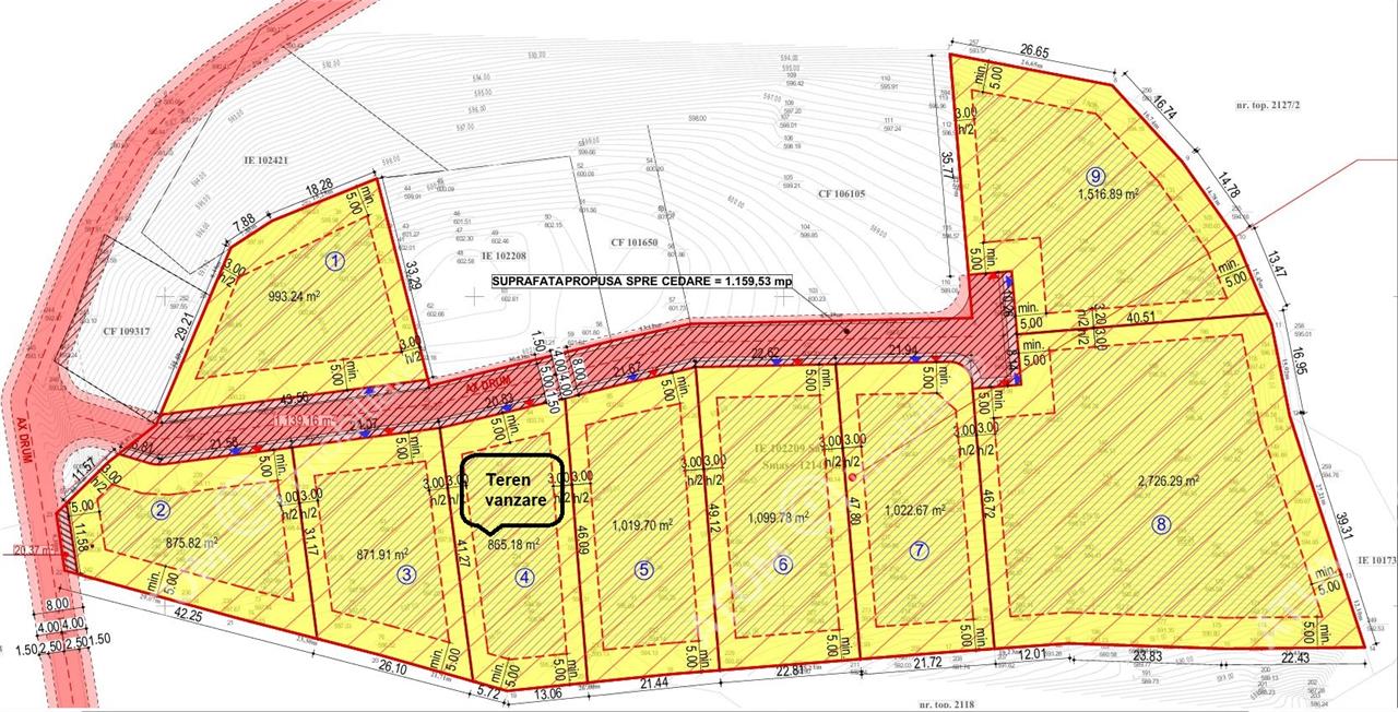 Va propun spre vanzare un teren intravilan cu o suprafata generoasa de 865 mp, situat in localitatea Tocile, una dintre cele mai cautate locatii pentru dezvoltarea de case de vacanta si pensiuni turistice. Proprietatea este parte dintr-un ansamblu de 9 parcele, toate avand deschidere la acelasi drum de acces privat cu latimea de 8 metri, drum prevazut in documentatia PUZ aferenta zonei.